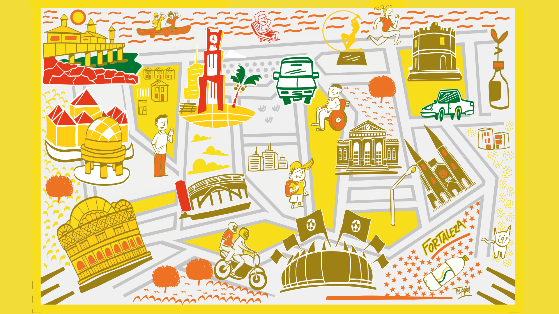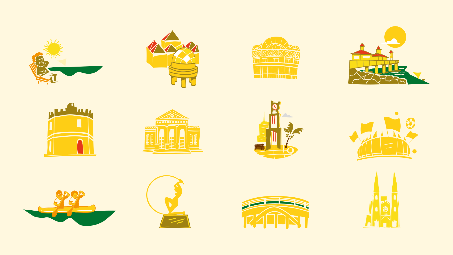 Para o Baião Studio, foi um orgulho transformar essa ideia em arte. Criamos ilustrações que homenageiam os lugares, os espaços e as histórias que conectam a cidade no dia a dia. Do bar da esquina ao estádio, da praia à cultura popular, dos amigos aos trajetos cotidianos. Tudo é encontro.