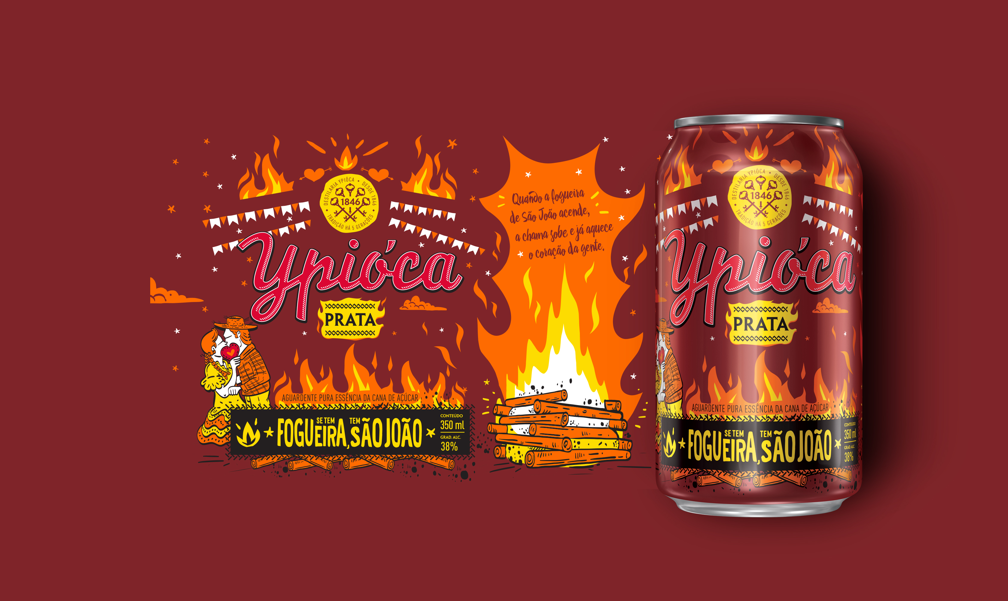 In association with FutureBrand design studio, Baião Studio illustrated the six cans of a special collection of the Ypióca cachaça that celebrated the Festa de São João – the festival dedicated to Saint John the Baptist, very typical in the Northeast and other regions of Brazil, that happens in June. The six cans represented a traditional element of the Festa de São João: the abundance (symbolizing the food), the forró (a traditional rhythm from Brazil's Northeast), the quadrilha (a typical folk dance), the show, the wedding celebration and the bonfire.